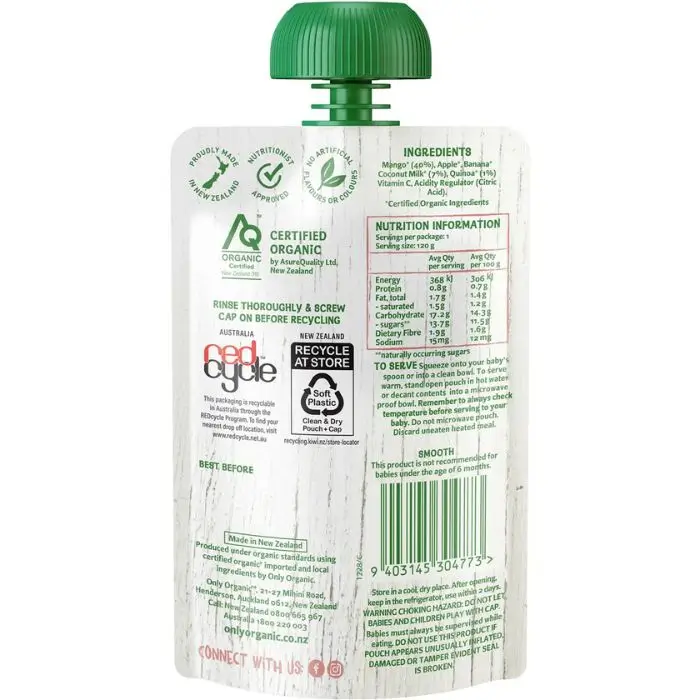 Only Organic Mango Coconut & Quinoa 6+ Months | 120g